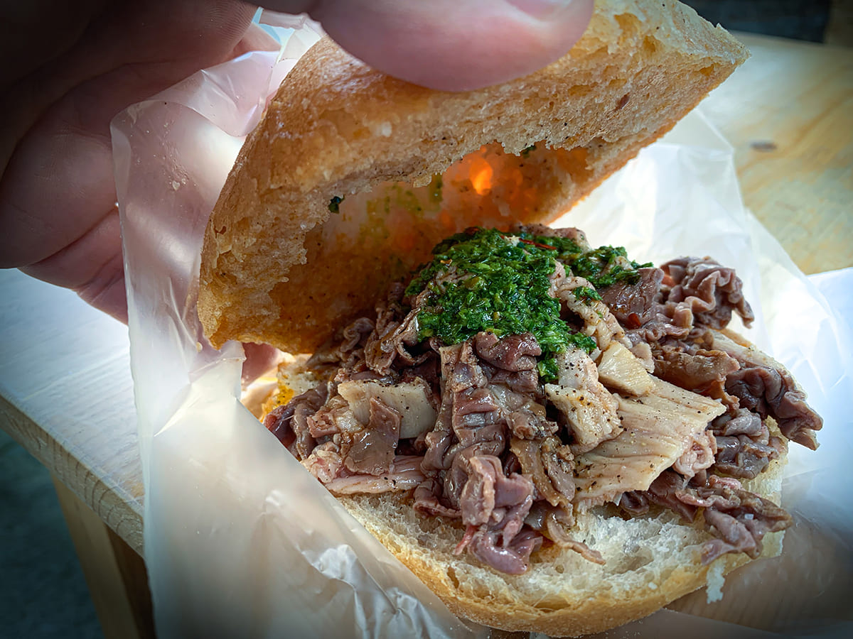 It is time now to start our food tour: Stop at Antica Porchetteria Granieri for a warm porchetta panino, or try the city’s iconic lampredotto—slow-cooked tripe tucked into a crusty roll with salsa verde and a dash of broth. A true local taste of Florence’s market tradition.