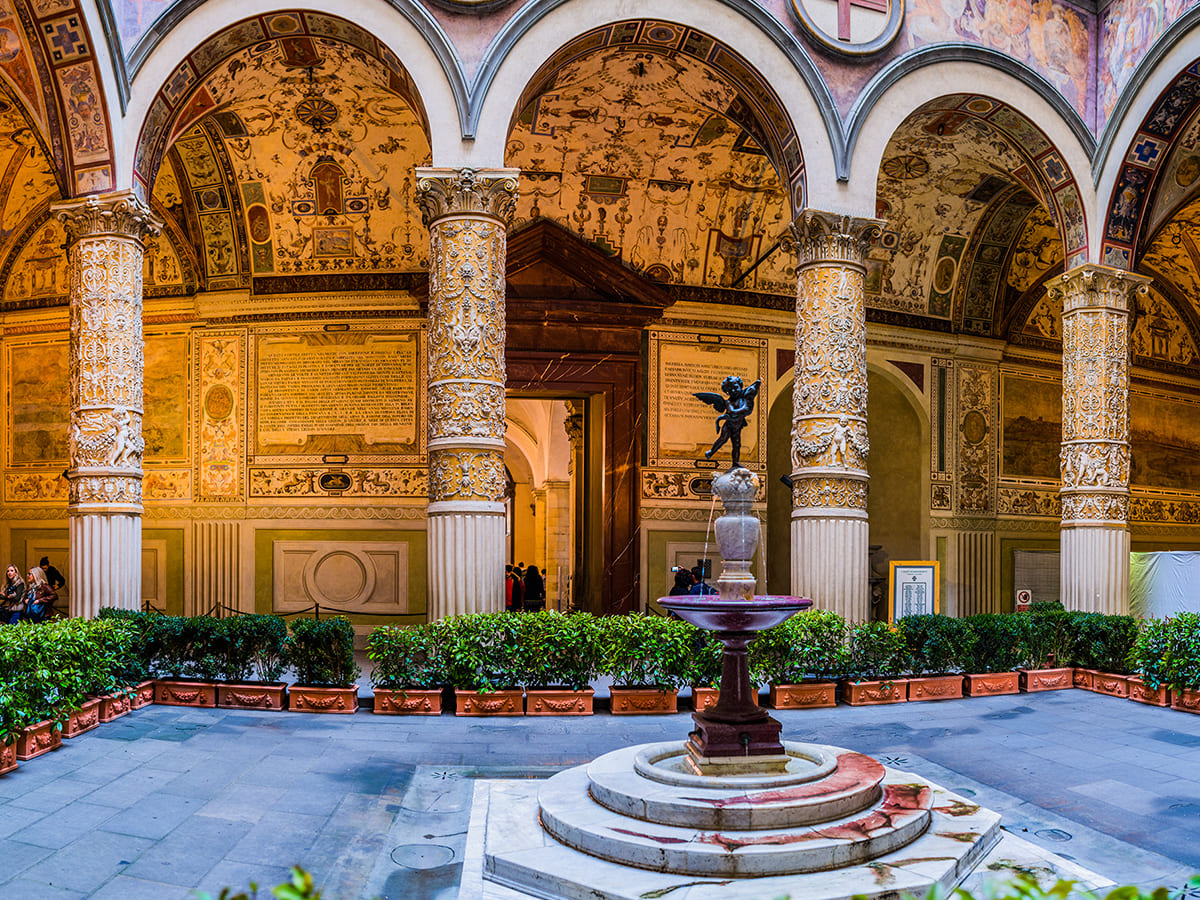 Continue to Ponte Vecchio, lined with artisan jewelleries, then through the elegant piazza della Signoria with its palazzi and designer boutiques.